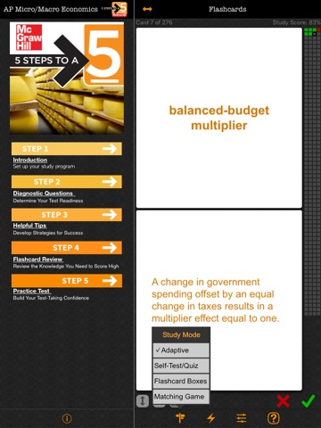 Designed to assess a users current knowledge and based closely on the actual AP Microeconomics Macroeconomics test given each year, this application uses an ingenious 5 step method to prepare students for the exam.