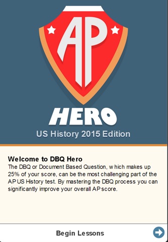 DBQ Hero is completely tailored to the new 2015 AP US History Test and will help you clearly and easily understand how to answer the often confusing DBQ question. By following the simple methods taught in DBQ Hero you will be able to significantly improve your DBQ score and pass the AP US History exam. This app was created by a teacher at one of the top ranking high schools in America with an average student pass rate of 85% on the AP US History Exam over the last 7 years.