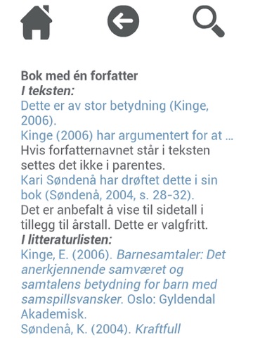 Ved Universitetet i Stavanger (UiS), Det humanistiske fakultet, skal man benytte APA-standarden (American Psychological Association), fra den 6. utgaven av Publication Manual of the American Psychological Association. Dette er et såkalt forfatter/år-system, hvor alle referanser er samlet i slutten av dokumentet. Appen inneholder i tillegg til en generell oversikt, en liste med relevante eksempler for studentene ved Det humanistiske fakultet ved UiS.