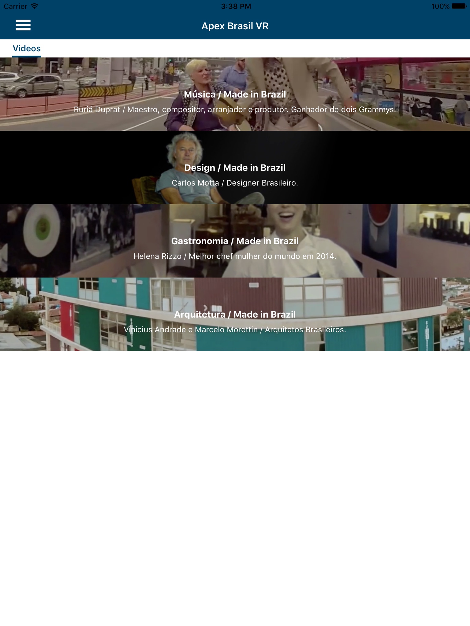 Uma experiência imersiva na cultura Brasileira com quatro videos 360° que você pode assistir com ou sem óculos de realidade virtual.