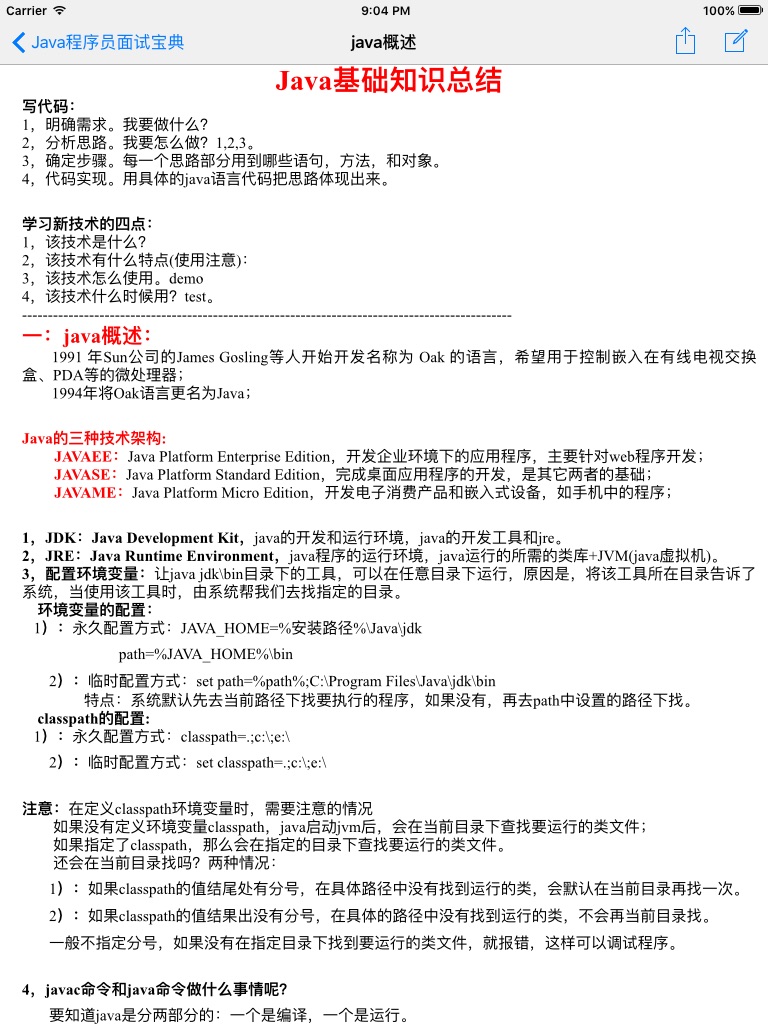 -----内容详实、贴切,详细介绍了java基本知识、java的基本API,常用用法、以及50道java常见编程题,是程序员朋友不可多得的参考资料;