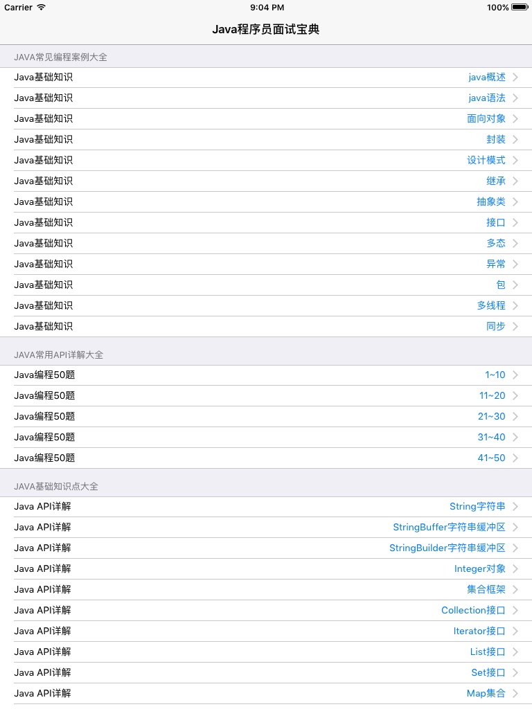 -----应用内容涵盖了:Java基础知识总结、java常用API大全、java编程50题。