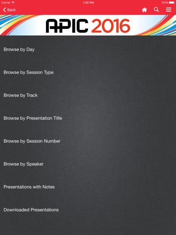 The APIC 2016 mobile handout application allows you to search through the presentations from the 2016 conference and access all the available presentation slides. You can draw and highlight directly on the slides using your fingers, and you can take notes on each slide. All your notes are saved online for you so you can access them later through your online personal summary.