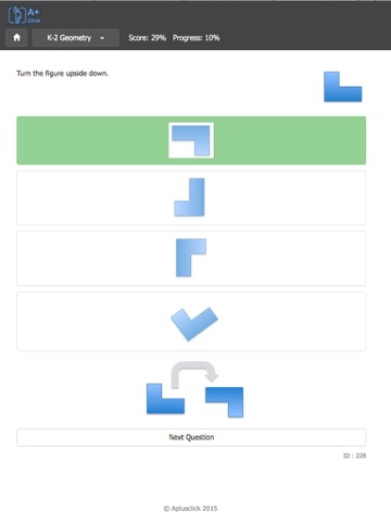 A+ Click K2 Math introduces math to first graders in funny way. The app features a set of 460+ challenging problems with the answers for kids in grades two. The questions are based on the Common Core Standards in Math and go beyond by adding hundreds of meaningful practical problems and puzzles. The questions concentrate on understanding, spatial reasoning, usefulness, and problem solving rather than math rules and theorems. The problems include a short description and an illustration to help problem solvers visualize the model. The problems can be solved within one minute. The questions are sorted by 6 themes: arithmetic, algebra, geometry, data analysis, word problems and logic, and applied math. The problems are part of the free website www.aplusclick.com