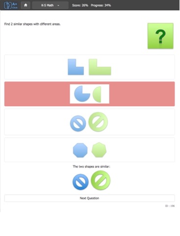 A+ Click introduces math to fifth graders. The app features a set of 440+ challenging problems with the answers for students in grade five. The questions are based on the Common Core Standards in Math and go beyond by adding hundreds of meaningful practical problems and puzzles. The questions concentrate on understanding, spatial reasoning, usefulness, and problem solving rather than math rules and theorems. The problems include a short description and an illustration to help problem solvers visualize the model. The problems can be solved within one minute. The questions are sorted by 6 themes: arithmetic, algebra, geometry, data analysis, word problems and logic, and applied math. The problems are part of the free website www.aplusclick.com
