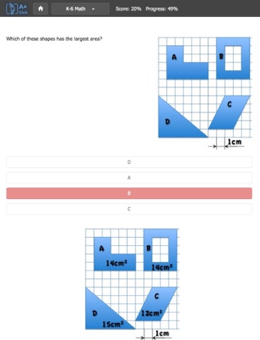 A+ Click introduces math is made for students in sixth grade. The app features a set of 470+ challenging problems with the answers. The questions are based on the Common Core Standards in Math and go beyond by adding hundreds of meaningful practical problems and puzzles. The questions concentrate on understanding, spatial reasoning, usefulness, and problem solving rather than math rules and theorems. The problems include a short description and an illustration to help problem solvers visualize the model. The problems can be solved within one minute. The questions are sorted by 6 themes: arithmetic, algebra, geometry, data analysis, word problems and logic, and applied math. The problems are part of the free website www.aplusclick.com