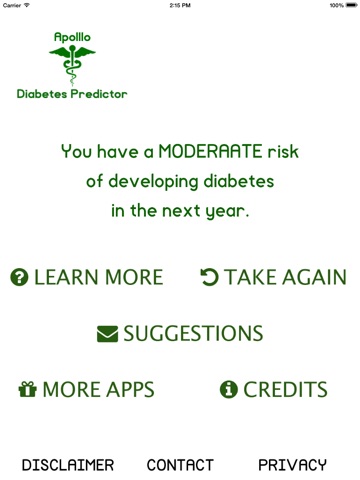 DISCLAIMER: Apollo cannot predict if you have diabetes. It is an educational application intended for informational purposes that estimates your chances of developing or already having diabetes. It does not provide medical advice or services, and do not use the content to make a diagnosis, replace regular medical check-ups, or replace a doctors judgement.