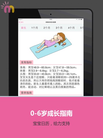 作为新手妈妈,你是不是有些手忙脚乱?你知道宝宝每月护理要点吗?你了解宝宝每月生长发育特点吗?你知道每月要和宝宝做哪些亲子游戏吗?你想要和同类父母一起交流吗?这些都不容错过,快来,让我们伴你和宝宝一路成长吧!