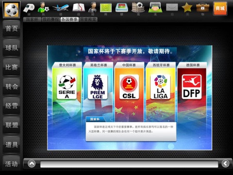 最专业的足球经理游戏, 最快速的上手方式, 最主流的操作界面!球员转会、妖人发掘、教练聘请、临场指挥、球队经营——四大经典特色,让你体验到最热血最真实足球赛事!