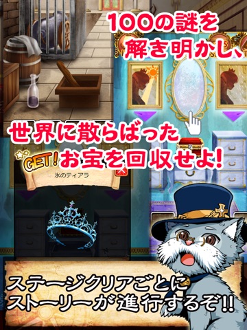 呪いのちからを解くために、ミーハー娘&お爺ちゃんネコが大冒険!全10章100ステージの謎が待つ、ドタバタ脱出ゲーム!