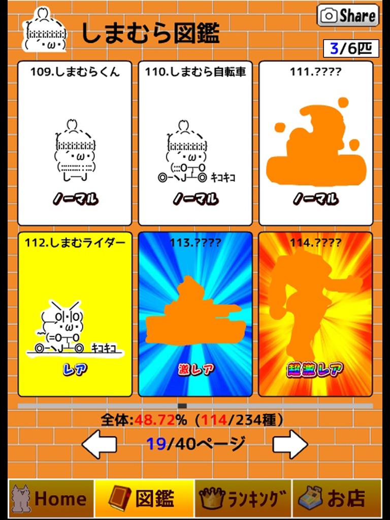 Shareボタンからは、現在のプレイ画面と匹数をツイートできるよ。