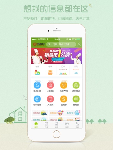 2,景点以及公演门票预订:提供韩国最全面的景点以及公演预订,价格低廉,基本上所有产品都是线上最低价,手机预订更方便,大部分产品可当天预订,随走随订;