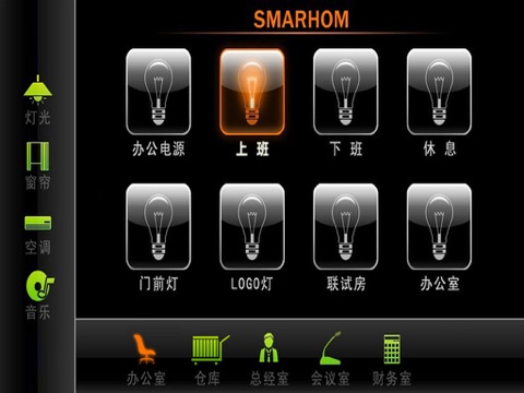 手机通过wifi与自制网络设备通信,并实现控制灯光,窗帘,空调,音乐等家居电器.