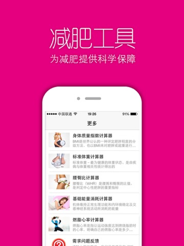 我们为您提供了身体质量指数计算器、腰臀比计算器等五种减肥工具,帮您早日达到心目中的理想身材!