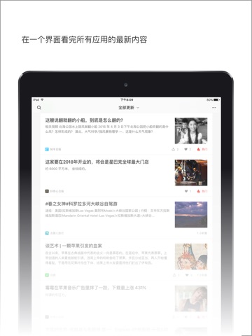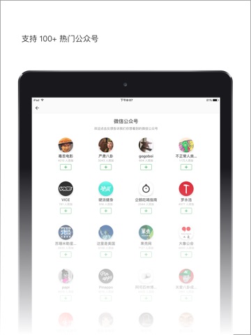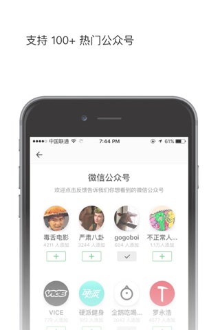 从 500 + 应用和微信公众号中添加你感兴趣的,即能无需安装预览它们的最新内容、也可以一个页面统一刷更新。