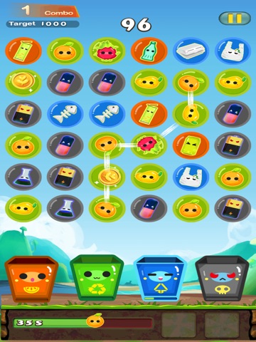 在6X6的游戏范围内,把对应的物品以拖拽的形式放入指定的桶内即可。支持多排/多个物品拖拽,相同类型的物品连续横向、纵向、45度方向一次性拖入相对应的桶内(最终都是经过最底层一排拖入桶中)。同时放入2个或2个以上物品进入指定桶内,该桶会增加能量值,能量值满后,桶会自动放出特殊技能: