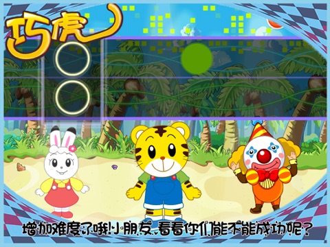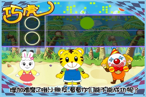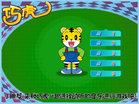 本游戏一共设置两个难度的关卡,每个关卡里分别有五种不同的歌曲,小朋友们可以选择自己喜欢的音乐来进行游戏。来和巧虎一起跟随美妙动听的音乐敲打着节奏吧!