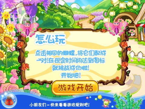 本款儿童教育游戏主要着重培养孩子们的观察能力和认识能力,在玩游戏的过程中,认识各种颜色的蝴蝶,并且找到相同颜色到蝴蝶点击它们就会成功消除哦,让孩子们在游戏中学习,帮助家长们在游戏中培养孩子,是我们做此款游戏的意义所在!是不是很想试试呢,那就快快下载吧!