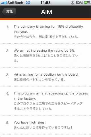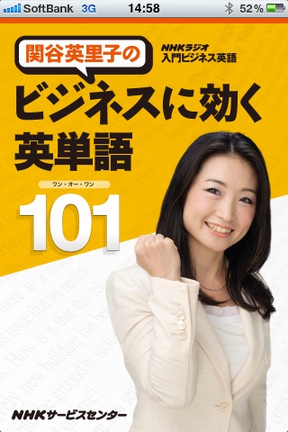 NHKラジオ「入門ビジネス英語」(2011 年4~9 月)の内容を再構成し、アプリ化しました。番組で取り上げた96の英単語に新規に5単語を追加。計101の英単語を豊富な例文と音声で紹介します。
