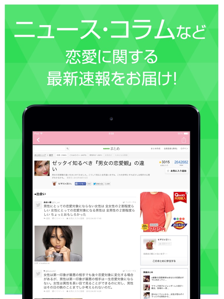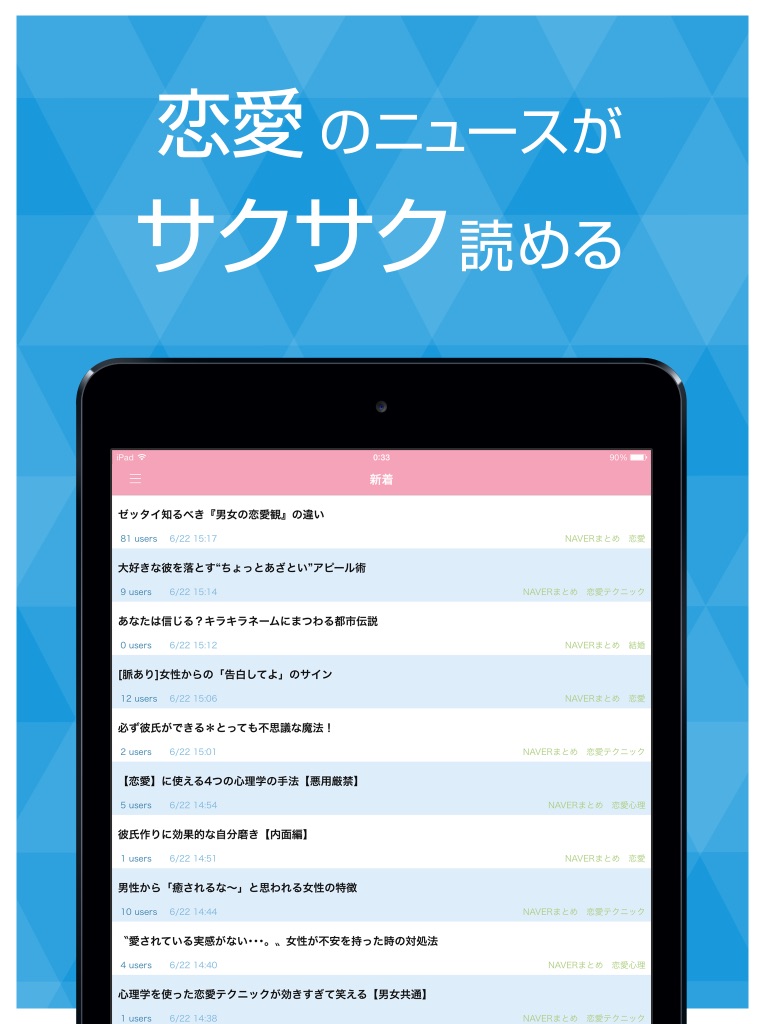 さまざまなサイトから配信される、恋愛に関する話題をまとめてチェックできます。