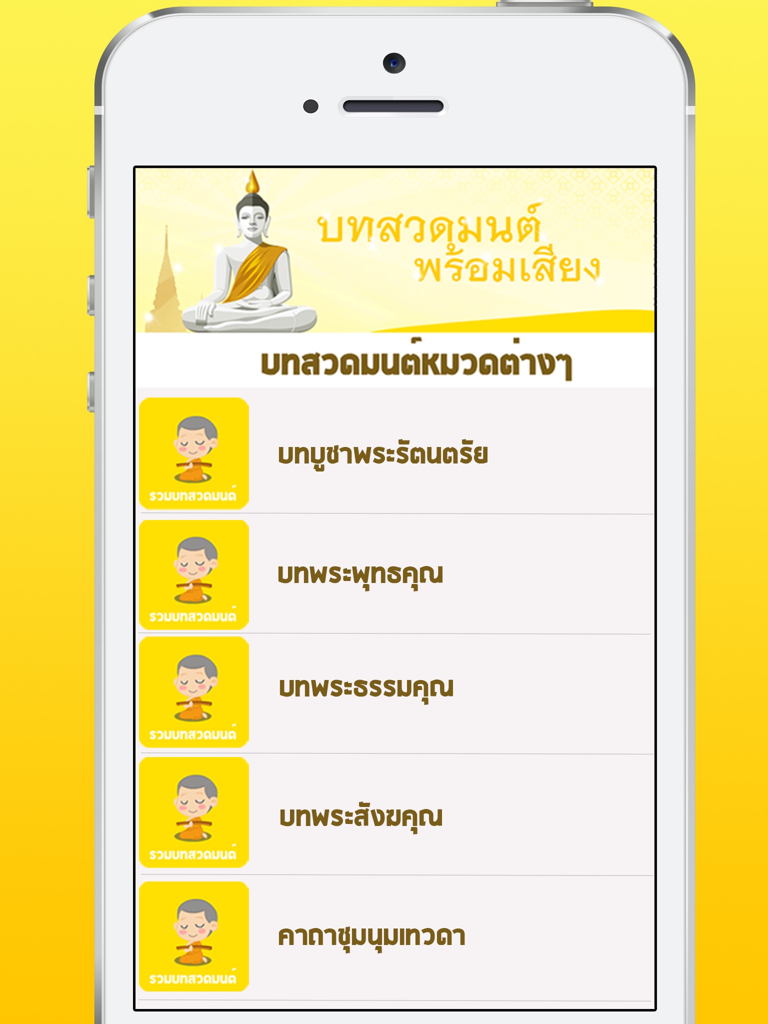 สวดมนต์อยู่ที่บ้านง่ายๆ พร้อมเสียงคำสวด ไม่ต้องต่อเน็ตให้เปลือง 3g ก็สามารถสวดมนต์ได้ ประกอบไปด้วย บทบูชาพระรัตนตรัย บทพระพุทธคุณ บทพระธรรมคุณ บทพระสังฆคุณ คาถาชุมนุมเทวดา คำอาราธนา ศีล 5 คำสมาทานศีล 5 คำอาราธนาธรรม คำอาราธนาพระปริตร คำถวายสังฆทาน คำถวายผ้ากฐิน คำถวายผ้าป่า บทแผ่เมตตาตนเอง แผ่เมตตาให้สรรพสัตว์ บทกรวดน้ำ (อิมินา) ขอขมาพระรัตนตรัย และ บทพระไตรสรณคมน์ ทั้งนี้สามารถแจ้งเพิ่มเติมได้ ทางเราจะเพิ่มให้ครับ แอพนี้ทีมงานตั้งใจพัฒนาขึ้น เพื่อให้ชาวพุทธได้สวดมนต์กันง่ายๆ มีตัวอักษรที่คมชัด สามารถอ่านได้ง่าย และมีเสียงสวดมนต์ที่ชัดเช่นกัน หากท่านพบปัญญา หรือต้องการอะไรเพิ่มเติม สามารถคอมเม้น+กด 5 ดาวได้ ทางเราจะพัฒนาเพิ่มเติมให้อย่างรวดเร็วที่สุดครับ ปล.อย่าลืมไปโหลดแอพ สวดมนต์ทำบุญไหว้พระ 9 วัด ด้วยนะครับ ขอบคุณครับ