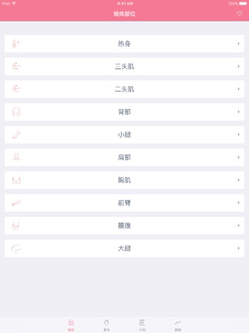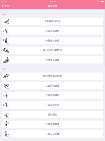 - 针对各个锻炼的详细视频示范
