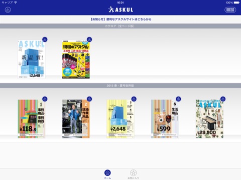 ●「アスクルカタログ」は年に2回(春・夏号/秋・冬号)発刊され(予定)、本デジタルカタログアプリも発刊にあわせて、最新号の内容にアップデートされます。