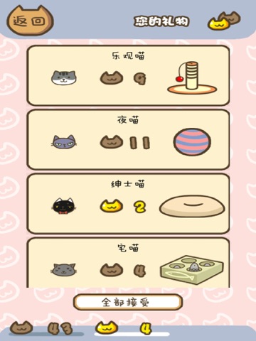 《喵喵后院》是由“济南团谱”开发的,专为爱猫又不那样勤快的人士制作,在这个猫咪的养成游戏中,你完全不用担心食物的供给问题,不照顾它们也不会发生任何奇怪的事情,在这个悠闲的后院,自在的与猫咪互动,体验另一个不同的感觉。同时游戏的操作也做到了最简化,你只需要放置玩具与猫粮,小猫就会源源不断的来到这个后院,。当小猫开心的离开时,它们会将自己收藏的心仪的喵喵货币留给你,以帮助你进一步购置道具与猫粮来吸引更多的猫咪来到这里,只属于你和猫咪的后院。