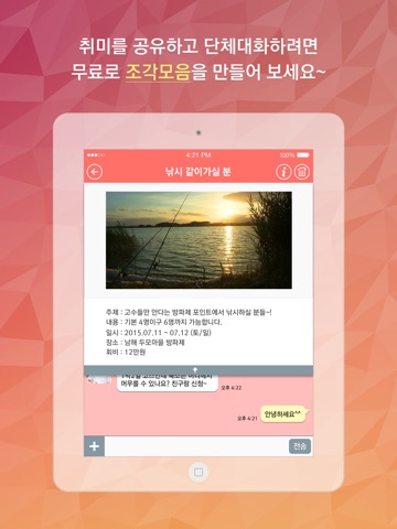 - 관심사항이나 이성만남의 토크를 등록하면 주변에서 토크내용을 보고 쪽지를 통해 채팅을 할 수 있습니다.