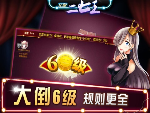 同时,正版二七王具有华美的画面,有趣的音效,在手机上完美重现了二七王游戏。