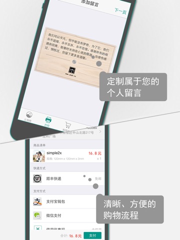 -多种打印材质供你选择。采用特殊的打印技术,确保照片的质感和光泽;提供两种配件,让你的个性化照片可以随意摆放。