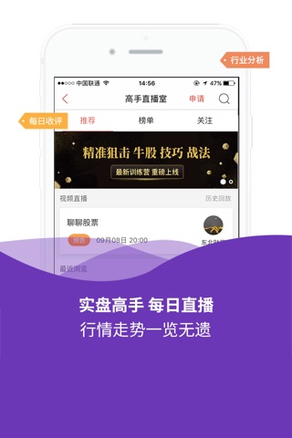 “这里有股票直播室,与各类牛人播主对话交流看盘心得,选股技巧,不管大盘如何震荡,都能让小散精准找到交易机会赚钱。” ——by 镜似人非“每天必看热点概念、热门板块、各类涨幅榜单,追踪股票、基金、期货市场的新闻资讯热点,这里有牛人、高手实时买卖股票信息,轻松选股,赚钱翻倍!”——by 残断天“