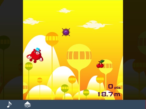 画面上のイガイガをひたすらよけながら進み、チェリーを連続ゲットして高得点を目指せ!!!