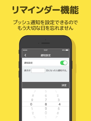 ※リマインダー機能を設定すると、あなたが通知してほしい日に通知させることができます。