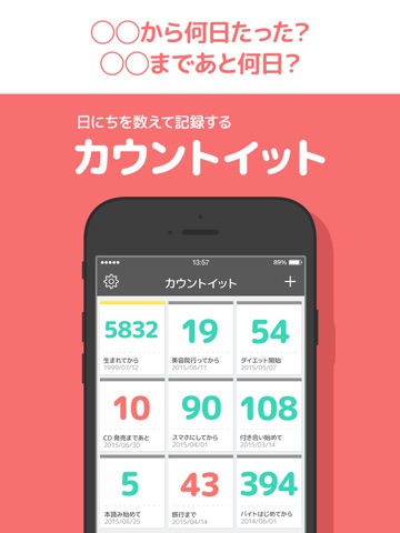 を獲得した大人気の日数カウントアプリ「Count it」の進化アプリです。
