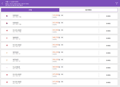 항공사별/직항별/ 등 편리하고 다양한 검색 서비스