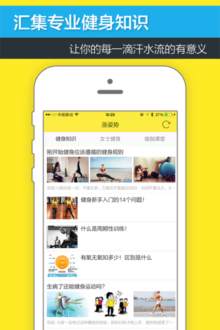 涨姿势-包含健身知识、女士健身、瑜伽课堂三大板块,内容丰富,男女皆宜。