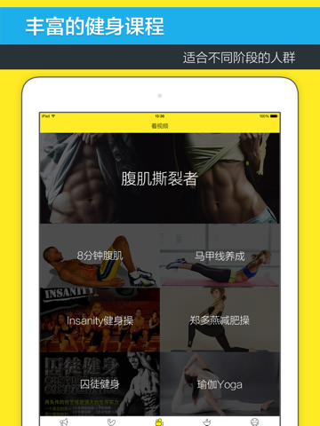 看视频-七套不同的课程视频教学,练完就可以召唤人鱼线马甲线了。