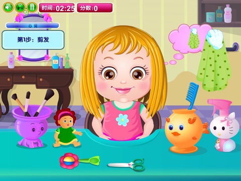 小宝贝的头发慢慢的长长了,现在显得有些凌乱,我们这就来帮她好好护理一下头发吧,不过给小宝贝剪头发前得先哄哄她哦。