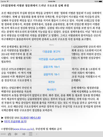 신문기사, 사설, 칼럼, 웹소설 등을 예쁜 한글 글꼴로 편안하게 즐겨 보세요!