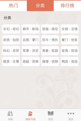 内置书城,分类齐全,海量书籍,你想看的应有尽有;