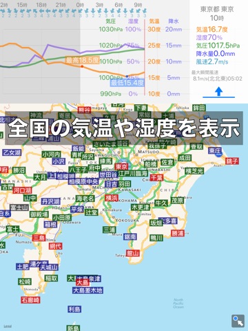 「気温グラフ」は気象庁の観測点、全国約1300箇所の気温や雨量、湿度など主要なデータを見やすくグラフ表示するアプリです。