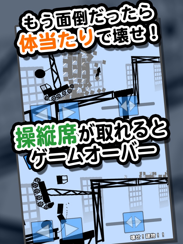 鉄球がついたクレーン車で建物を壊しながらゴールを目指せ。