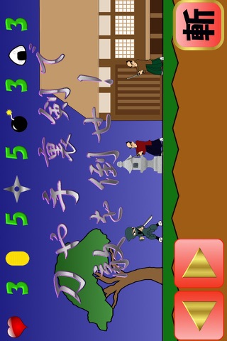 また、右上のボタンで武器を刀から手裏剣、爆弾等に切り替える事ができます。