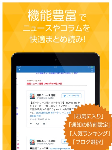 さまざまなサイトから配信される競艇の話題をまとめてチェックできます。