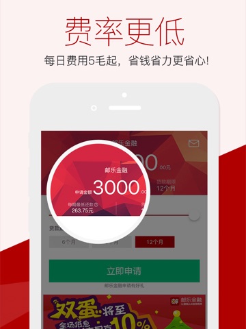 邮乐金融是年轻人的借钱神器,纯线上借款审核提现一步到位,极速放款3分钟到账,不需要线下签约,不需要任何纸质文件证明,只需要拿起手机,动动手指,躺着就把钱借了!