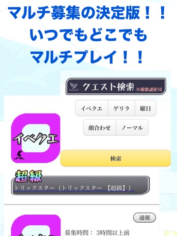 画面下の「検索」ボタンから募集中のマルチプレイを探してタッチするだけ!!