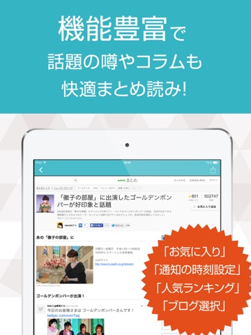 さまざまなサイトから配信されるゴールデンボンバーの話題をまとめてチェックできます。
