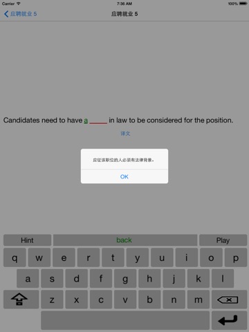 本应用包括1000多个商务场景下使用的核心单词,通过独特的练习形式:将单词放在典型的句子中,听录音,拼写出单词的实际应用形式的方式达到快速掌握单词,过目不忘,会实际应用的效果。