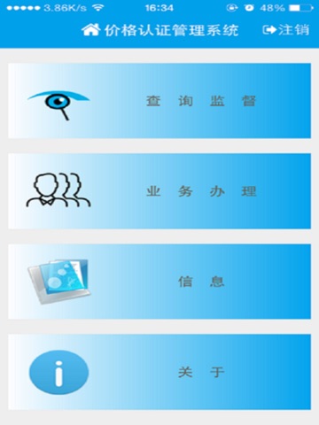供物价局价格认证中心人员以及委托方人员使用;提供查询监督、业务办理、查看通知、法律法规等操作。